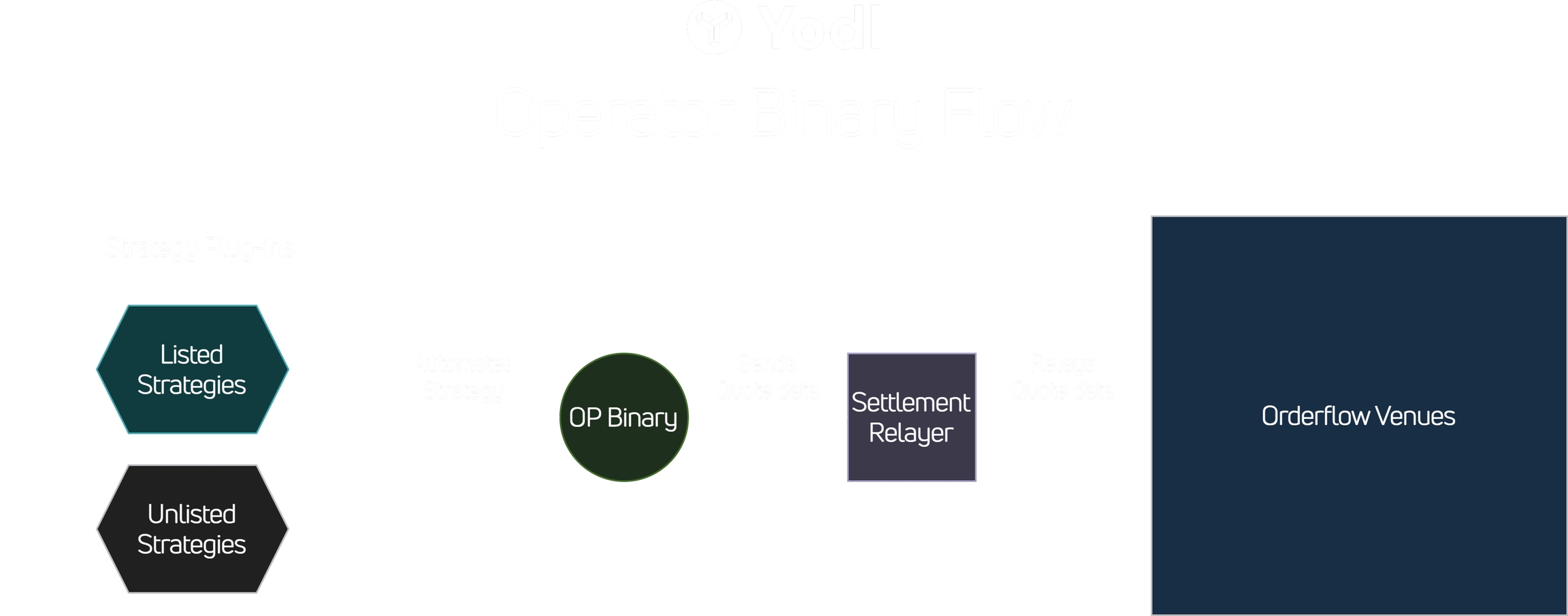The Operator Binary serves as the execution engine linking Operators with YODL’s Settlement Relayer and on-chain contracts. It is responsible for quoting, accounting, and settlement operations, ensuring that all executions occur within verified parameters and remain fully traceable.